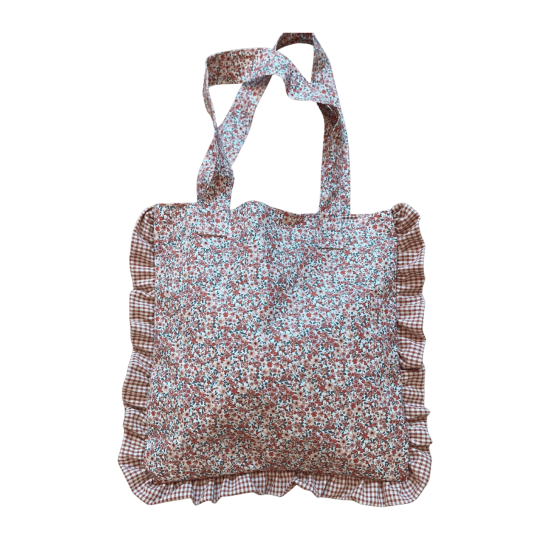 Tote Bag con tejido flor Matilda y volante en vichy, tejido impermeable.