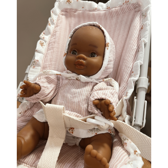 Silla de muñecas con bolsa a juego en tejido vichy nude y flor Sara