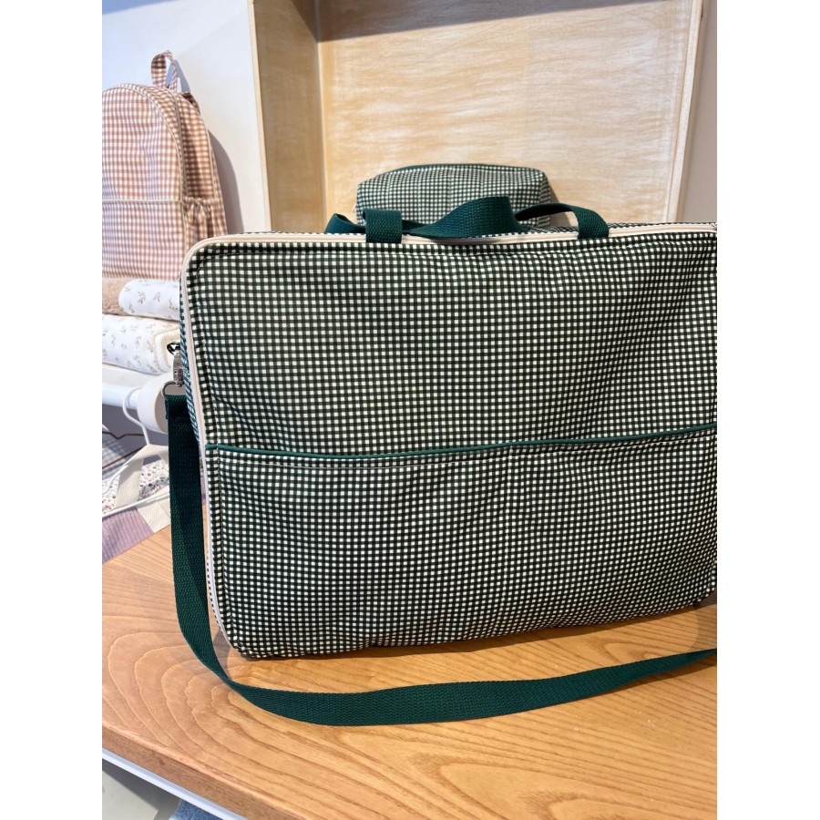 Maleta maternidad confeccionada con tejido resinado de cuadro vichy verde.
