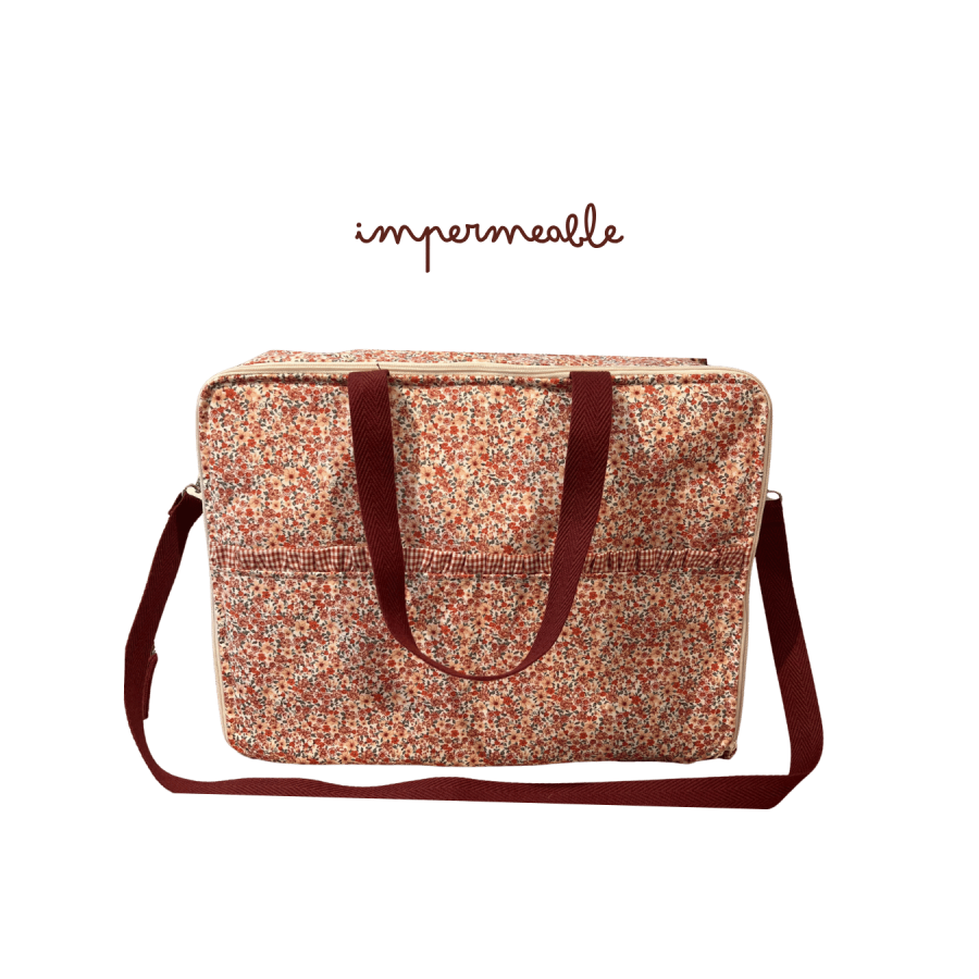 Maleta de maternidad confeccionada con el tejido resinado de flor.