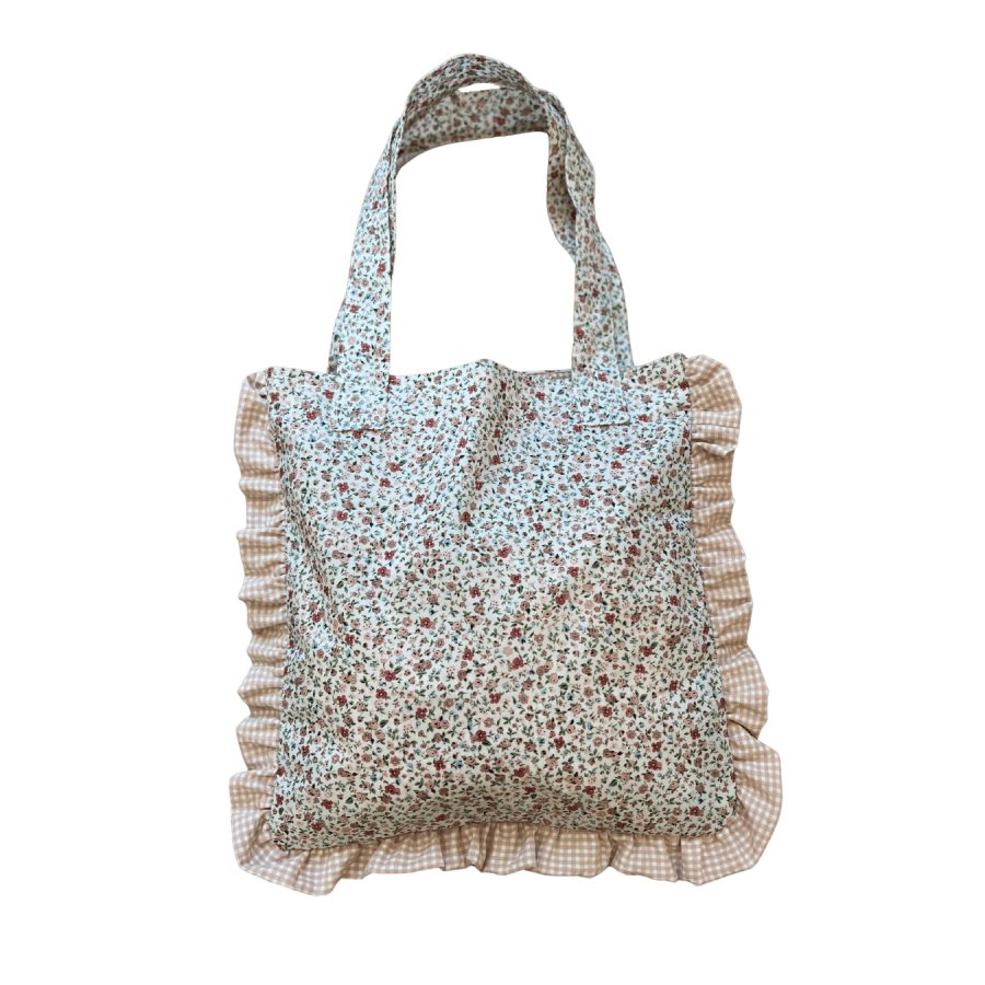 Tote Bag con tejido flor Sara y volante en vichy, tejido impermeable.