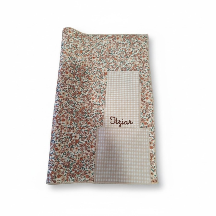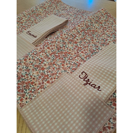 Mantel individual personalizado, incluye servilleta. Confeccionado en tejido resinado.