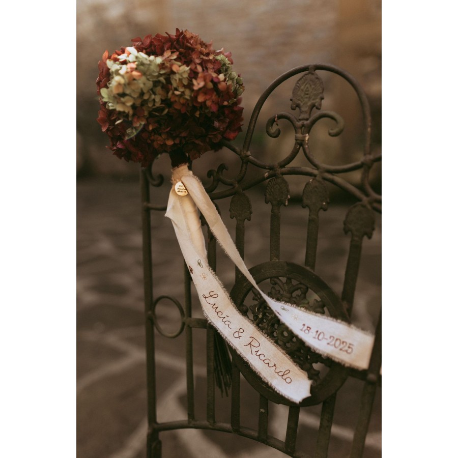 Lazo ramo novia bordado de manera artesanal. Incluye el bordado de fecha e iniciales.